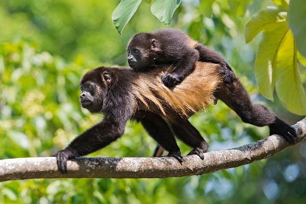 El mono congo es tan grande que en ocasiones se lo confunde con felinos. Empieza a aullar con la primera luz del día y es posible oírlo a más de un kilómetro de distancia.