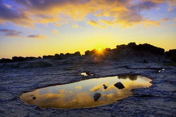 Estas pequeñas lagunas nos sirvieron de espejo para captar el encendido cielo, con las nubes reflejadas en posición inversa a las originales.