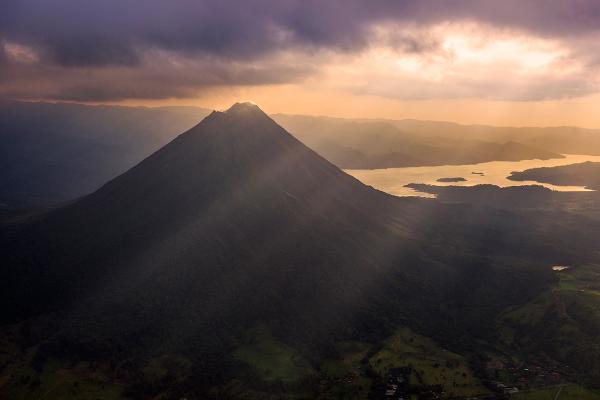 Esta foto del Arenal durante el alba representa dos de nuestros mayores intereses: amaneceres y volcanes.