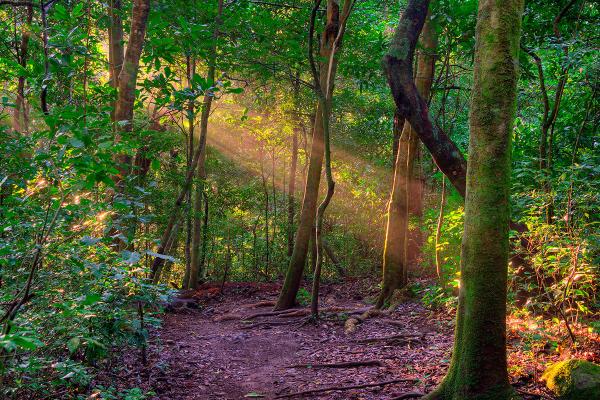 Los rayos de luz penetran los bosques de Pailas en el Rincón de la Vieja.