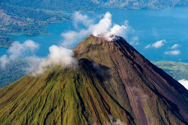 El cono único del Volcán Arenal mantiene un mínimo de actividad.