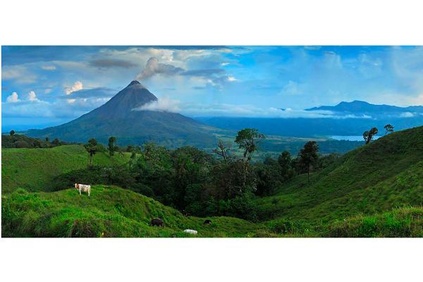 Vista panorámica del Arenal desde fincas ganaderas próximas.