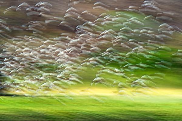 Fotografía de exposición lenta para captar el vuelo de las aves, de la que obtuvimos esta imagen abstracta.