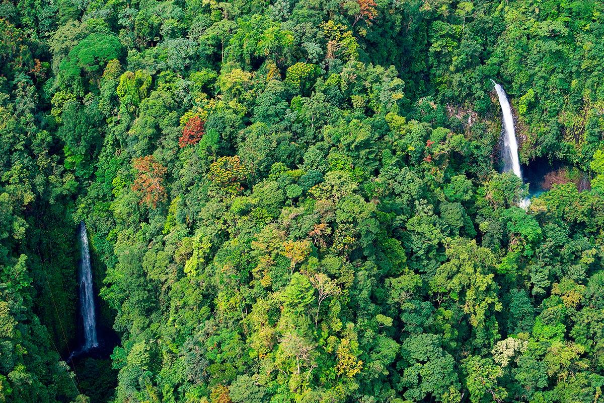 Imagen de dos cataratas que desenbocan en puntos paralelos.