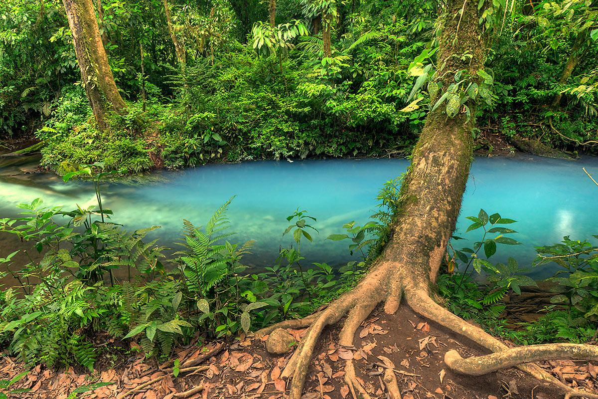 Para encerrar la serenidad de las aguas del río Celeste, nos valimos de los dos troncos que atraviesan la fotografía.
