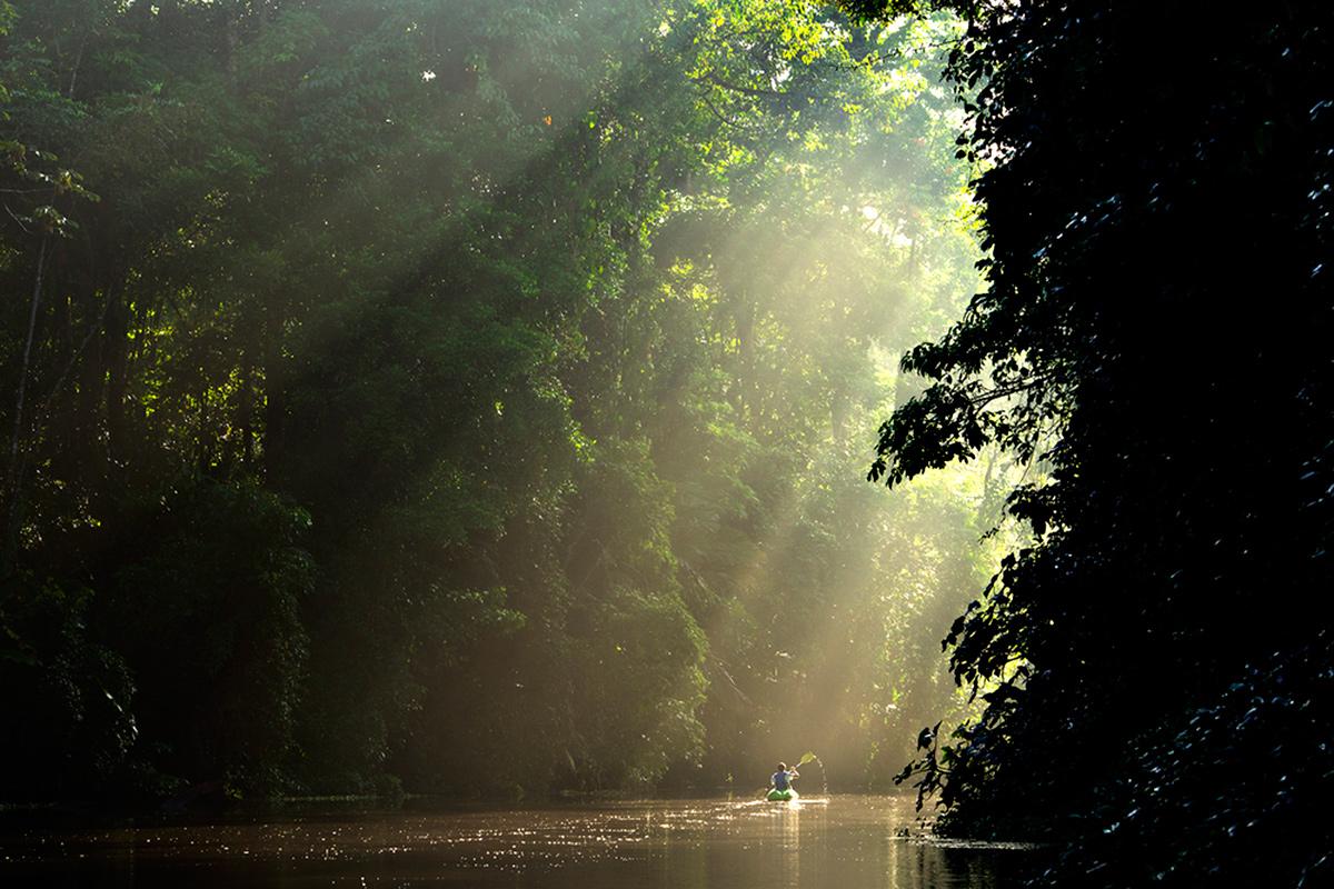 Imagen de un turista paséandose en canoa por Tortuguero.