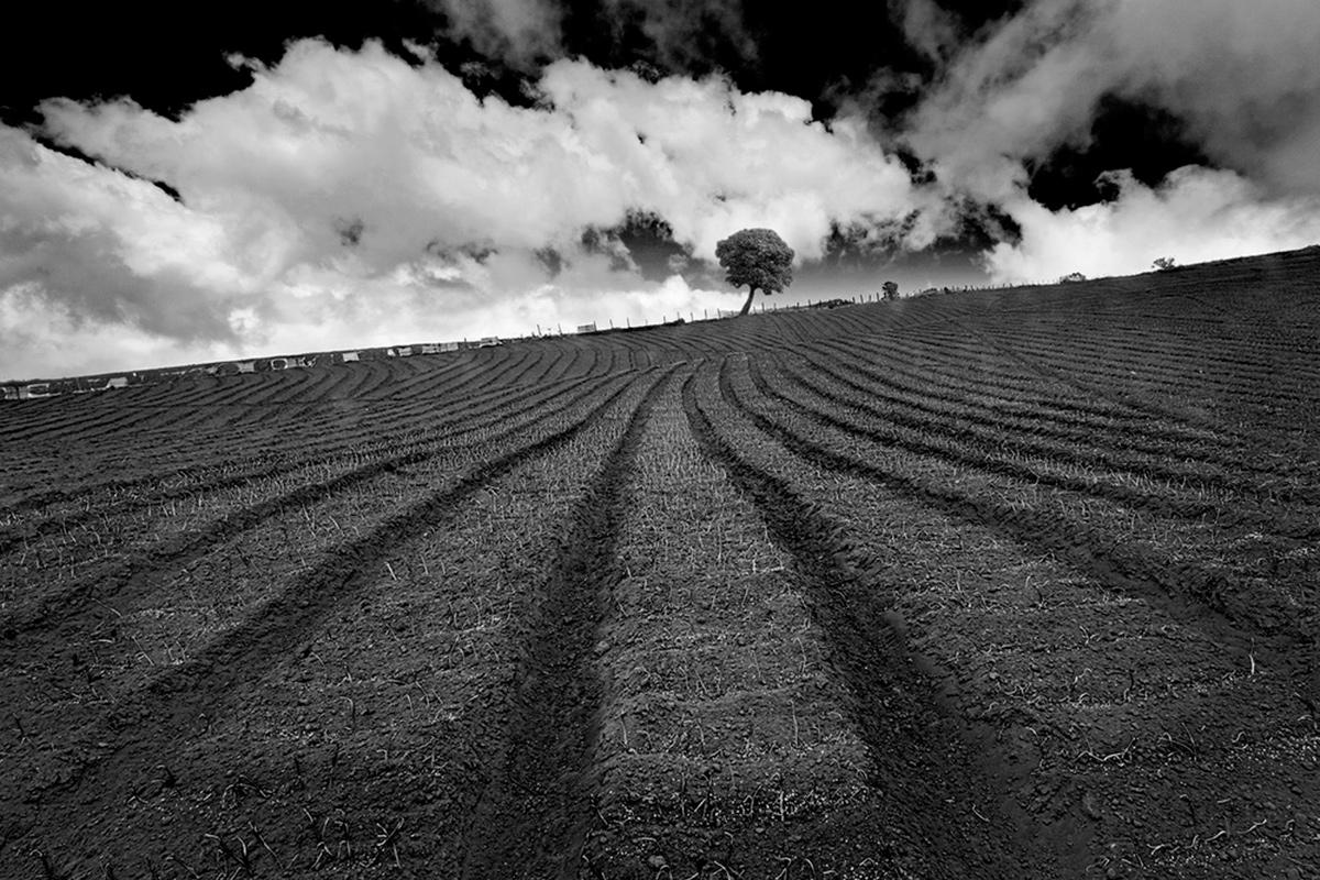La solitaria presencia del árbol, comparada con el aspecto de las nubes, adquiere tres dimensiones.