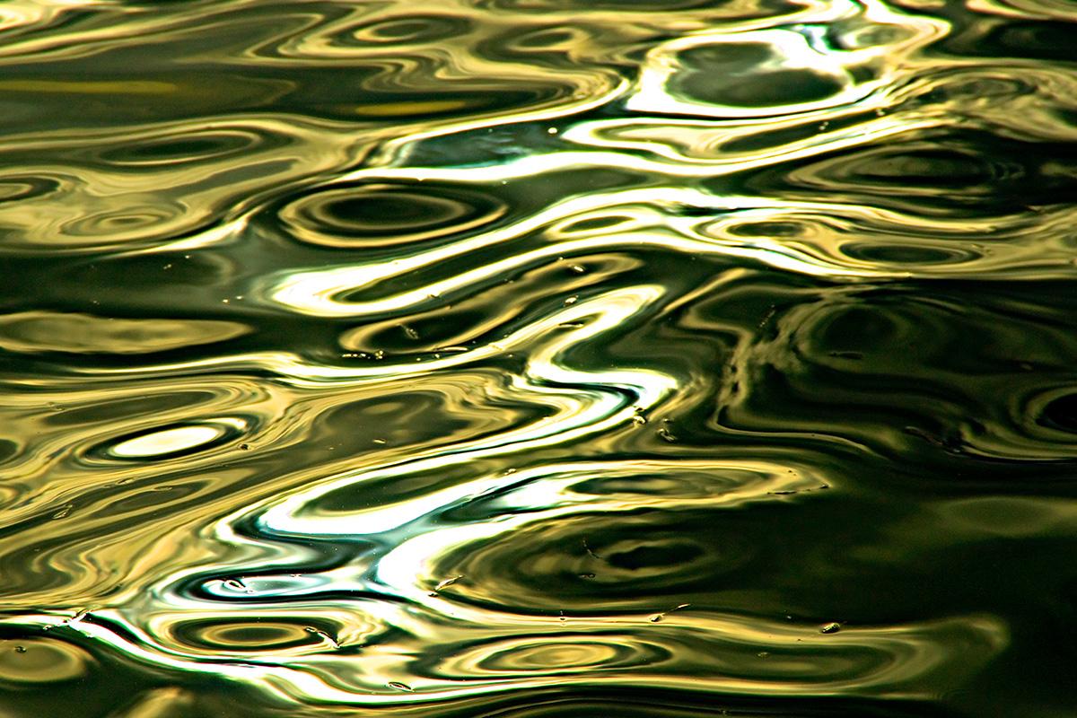 Imagen abstracta de reflejos de luz cálida que danzan en el mar.